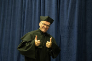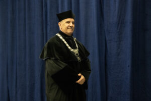 Jak podkreślił prof. Stanisław. M. Rybicki, fakt, że ostatni raz przewodzi uroczystościom inauguracyjnym w roli dziekana, sprowokował kilka refleksji i podsumowań: – Ostatnie 8 lat w życiu naszego Wydziału, te dwie kadencje, gdy stałem na jego czele, obfitowały w szereg wyzwań. Byliśmy zmuszeni działać w cieniu zagrożeń zewnętrznych: zbrojnej agresji tuż za granicami naszej Ojczyzny, masowego napływu obywateli sąsiedniego państwa, szukających bezpiecznej przyszłości po doświadczeniach wojennej traumy. Globalnej pandemii, która zabierała nam bliskich, pozostawiając psychiczne piętno. Niełatwe bywały też te bliższe uwarunkowania. Zanim zapadła decyzja o połączeniu Wydziału Inżynierii Środowiska z Instytutem Energetyki realne były zupełnie inne scenariusze. O trafności przyjętego ostatecznie rozwiązania najdobitniej przekonuje ocena parametryczna, kategoria A to obiektywne świadectwo siły naukowo-dydaktycznej w obszarze dyscypliny: inżynieria środowiska, górnictwo i energetyka, którą udowodnił istniejący od 2019 roku Wydział inżynierii Środowiska i Energetyki. W następstwie kategorii A istotnie wzrosła liczba prowadzonych na naszym wydziale postępowań awansowych oraz doktoratów, a coraz liczniejsi młodzi naukowcy postrzegają nas jako optymalne miejsce do dalszego rozwoju.
