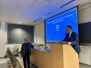 Pan Dyrektor przedstawił w swoim wystąpieniu wyzwania dla Miasta Krakowa, które określone zostały w zaktualizowanej Strategii Rozwoju Krakowa 2030. Zakres przedstawionych zagadnień obejmował obszary: efektywności energetycznej, gospodarki wodnej, gospodarki cyrkularnej oraz zabudowy miejskiej w kontekście dostosowania się Miasta do zmian klimatycznych i działań ograniczających zmiany klimatu. Wskazał, że przedstawione problemy wymagają interdyscyplinarnej współpracy i wymienił Zespoły Politechniki Krakowskiej, które w tym zakresie już działają. Zaprosił do współpracy kolejne Zespoły pracowników naukowo-dydaktycznych i studentów. Powiedział, że przygotowanie kadr zdolnych rozwiązywać złożone problemy wymaga nowego podejścia do ich przygotowania, gdyż chodzi o kadry wysoko wykwalifikowane. Stąd Miasto zachęca do współpracy i korzystania ze swoich zasobów bazodanowych wykorzystywanych w procesie dydaktycznym, a szczególnie do wykonywania prac dyplomowych związanych z omawianą problematyką.